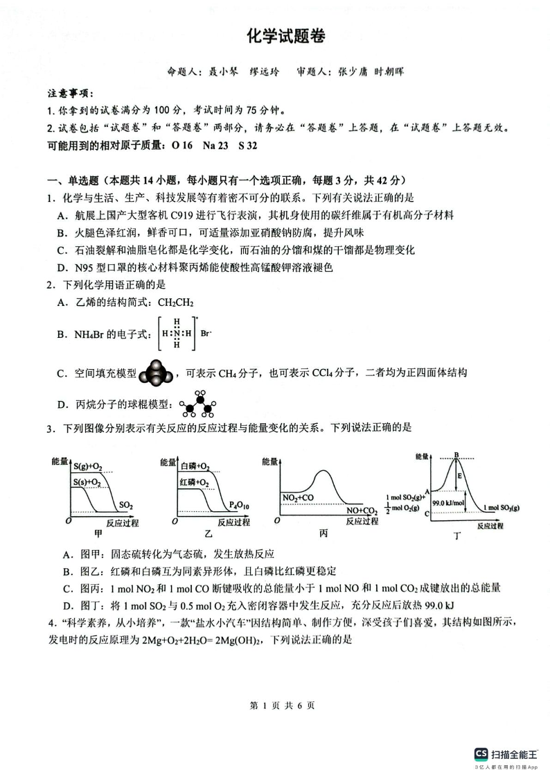 高一化学--安徽省智学联考2024-2025学年高一下学期7月期末考试