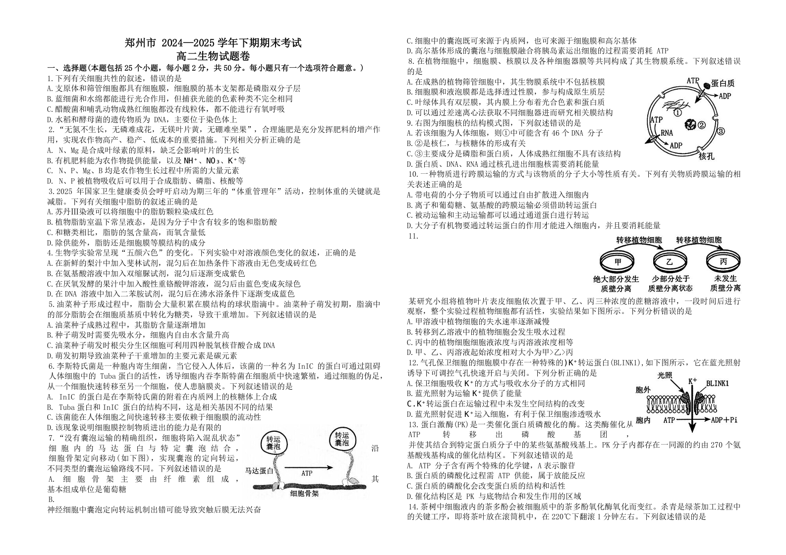 河南省郑州市2024-2025学年高二下学期期末考试生物