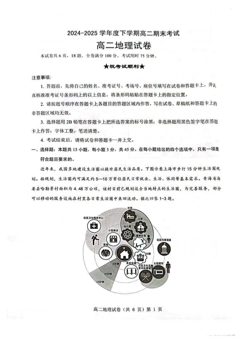 湖北省七市州2024-2025学年度高二下学期期末联考地理