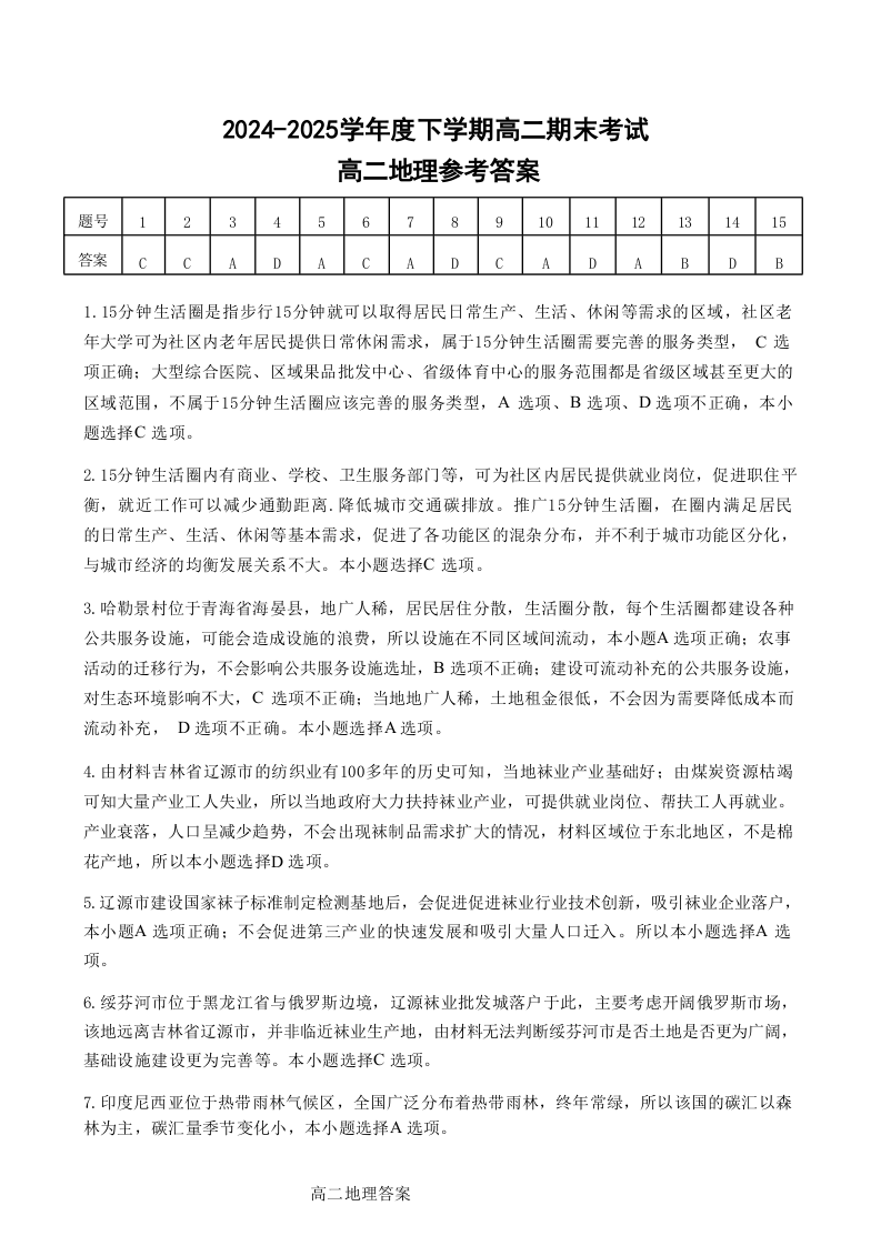 湖北省七市州2024-2025学年度高二下学期期末联考地理答案