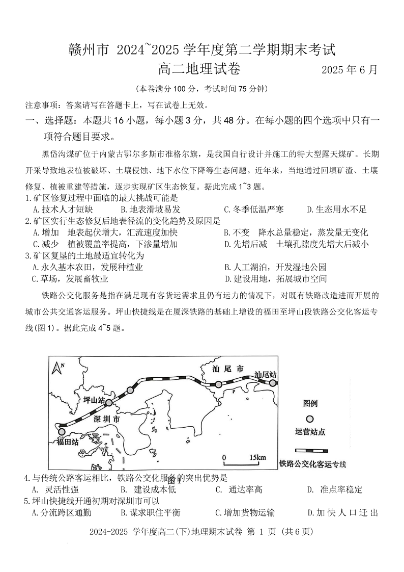 江西省赣州市2024-2025学年度第二学期高二年级期末考试地理