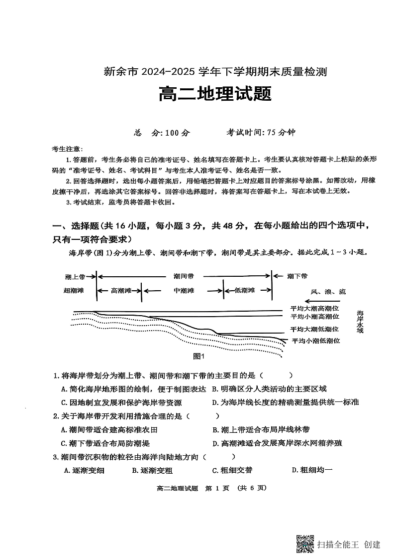 江西省新余市2024-2025学年高二下学期期末质量检测地理