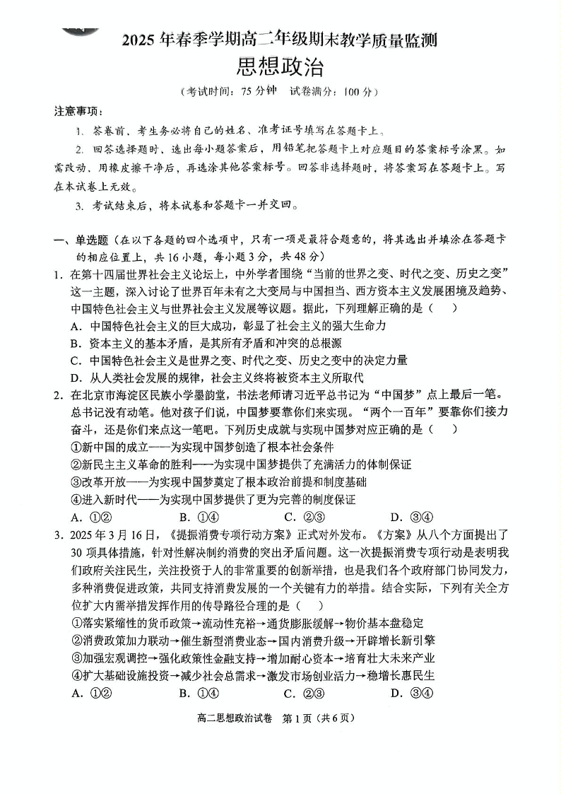 广西南宁市部分学校2024-2025学年高二下学期6月期末考试 政治+答案