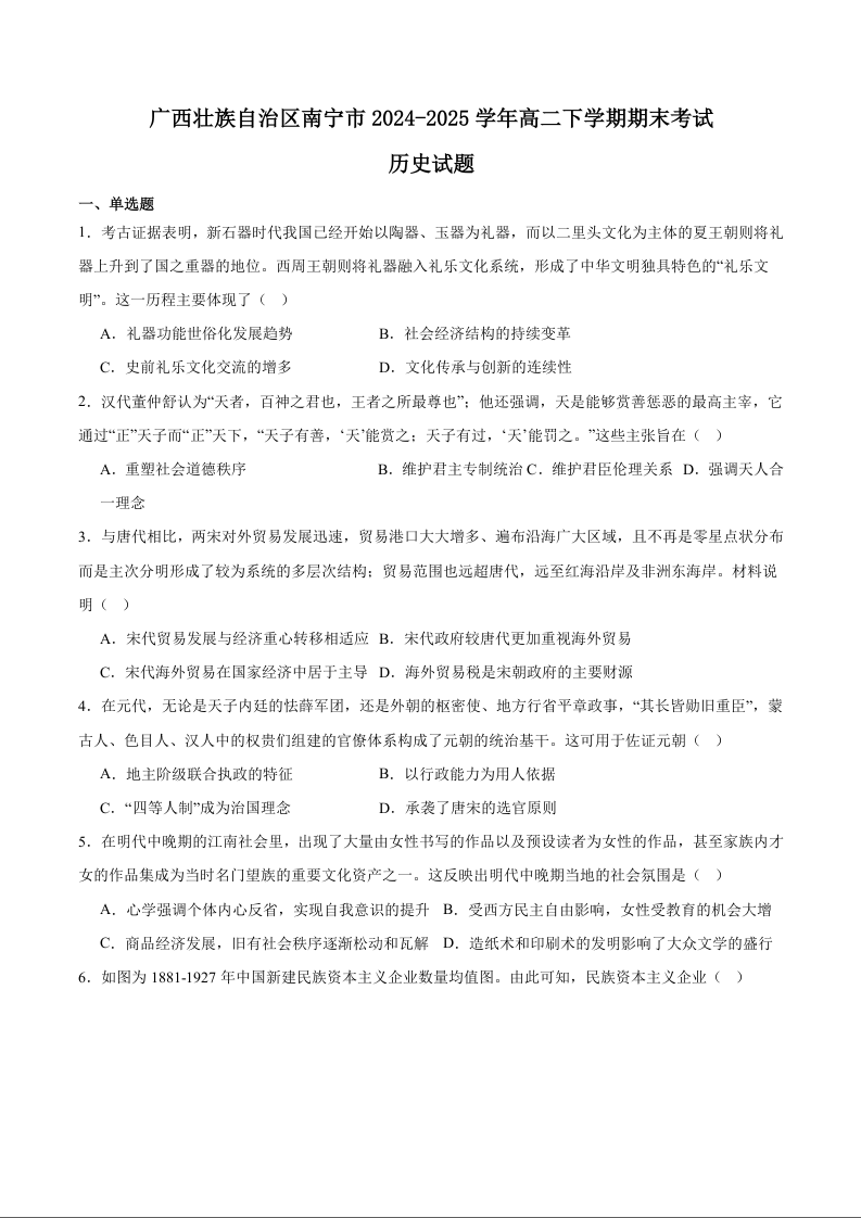 广西南宁市部分学校2024-2025学年高二下学期6月期末考试 历史+答案