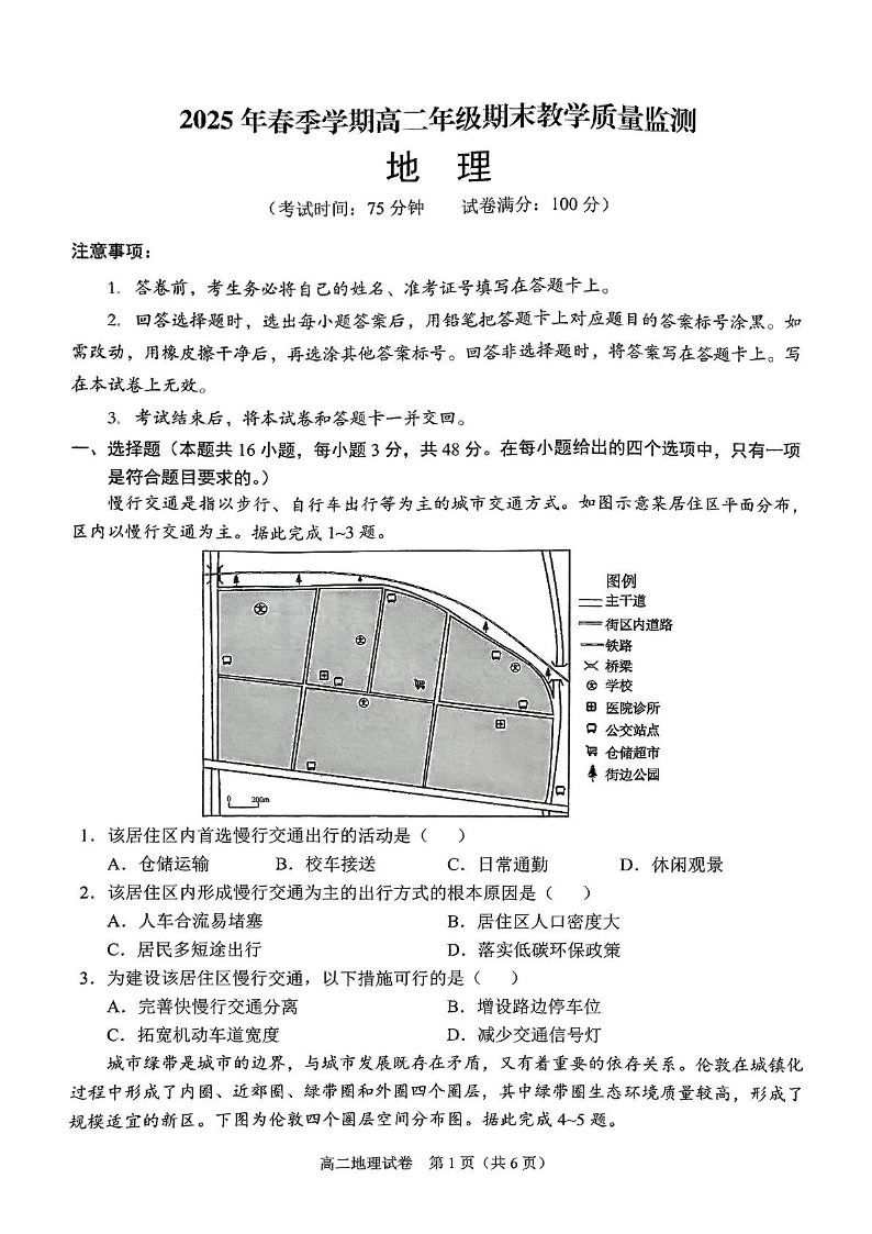 广西南宁市部分学校2024-2025学年高二下学期6月期末考试 地理+答案