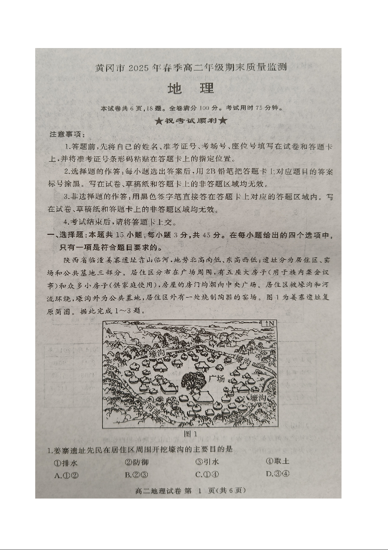 湖北省黄冈市2024-2025学年高二下学期期末质量监测地理+答案