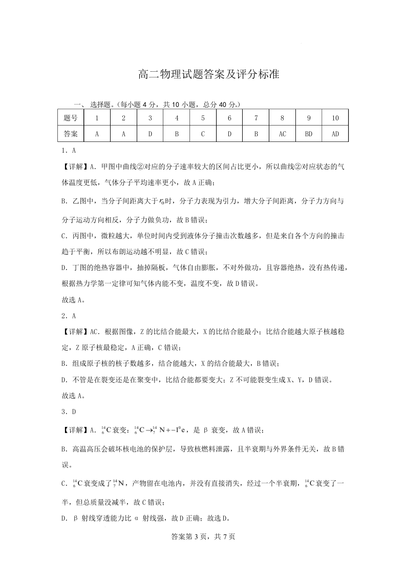 湖北省武汉市五校联合体2024-2025学年高二下学期6月期末物理答案