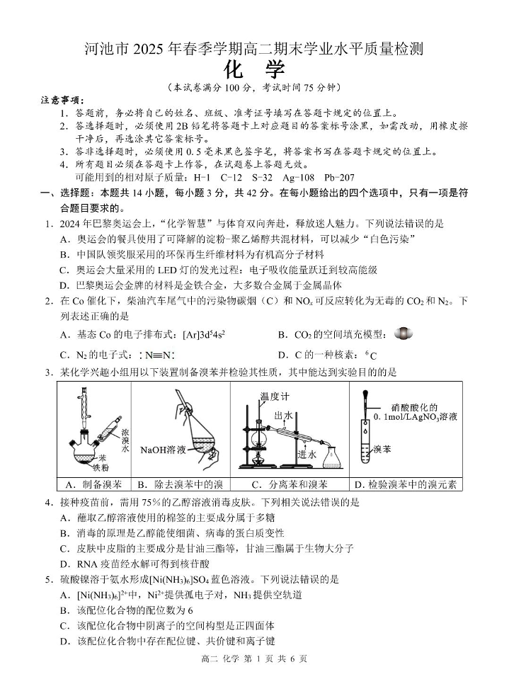高二化学+答案--广西河池市2024-2025学年高二下学期7月期末考试