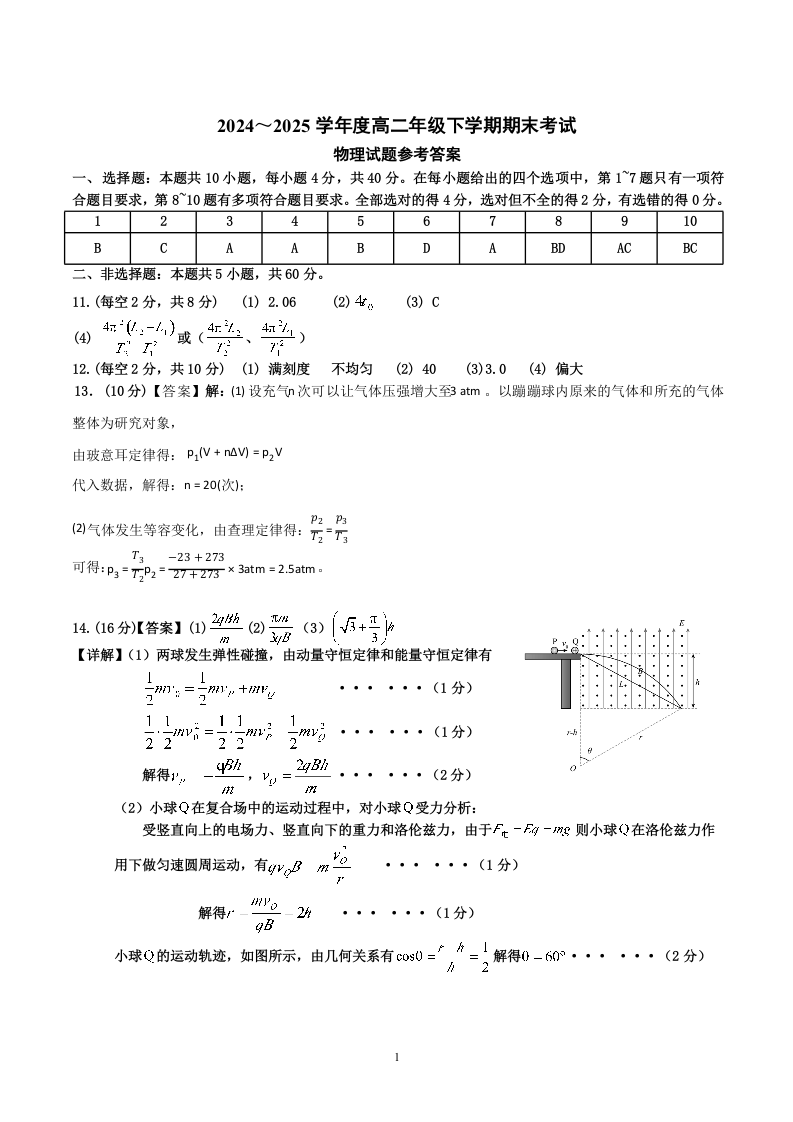 高二物理答案--湖北省黄石市2024-2025学年高二7月期末统一测试
