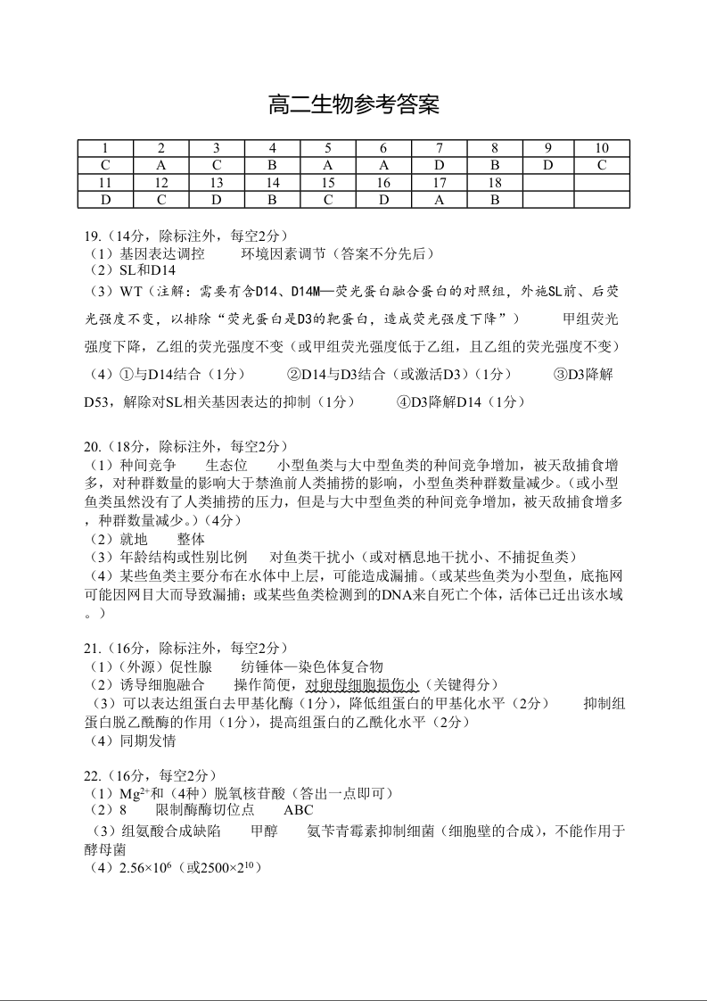 高二生物答案--湖北省黄石市2024-2025学年高二7月期末统一测试