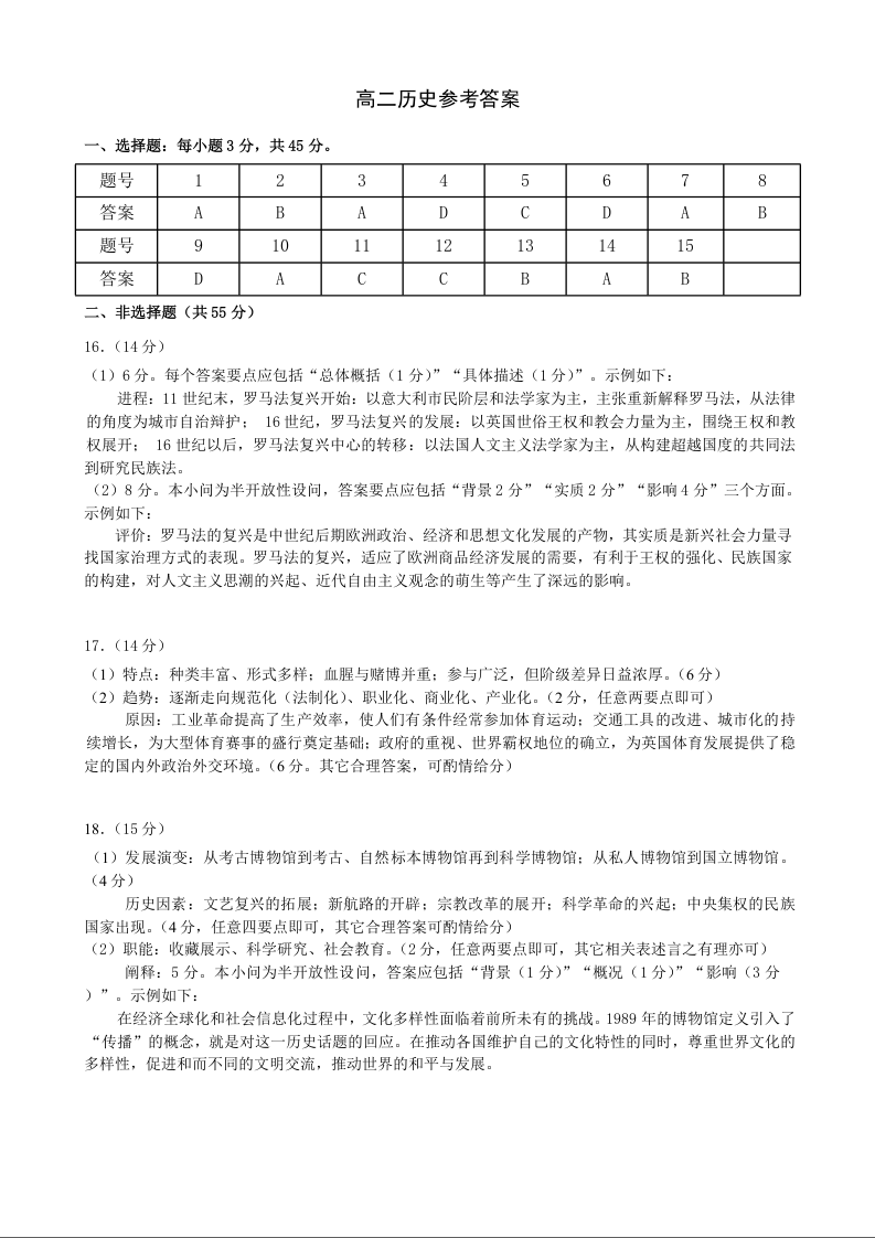 高二历史答案--湖北省黄石市2024-2025学年高二7月期末统一测试