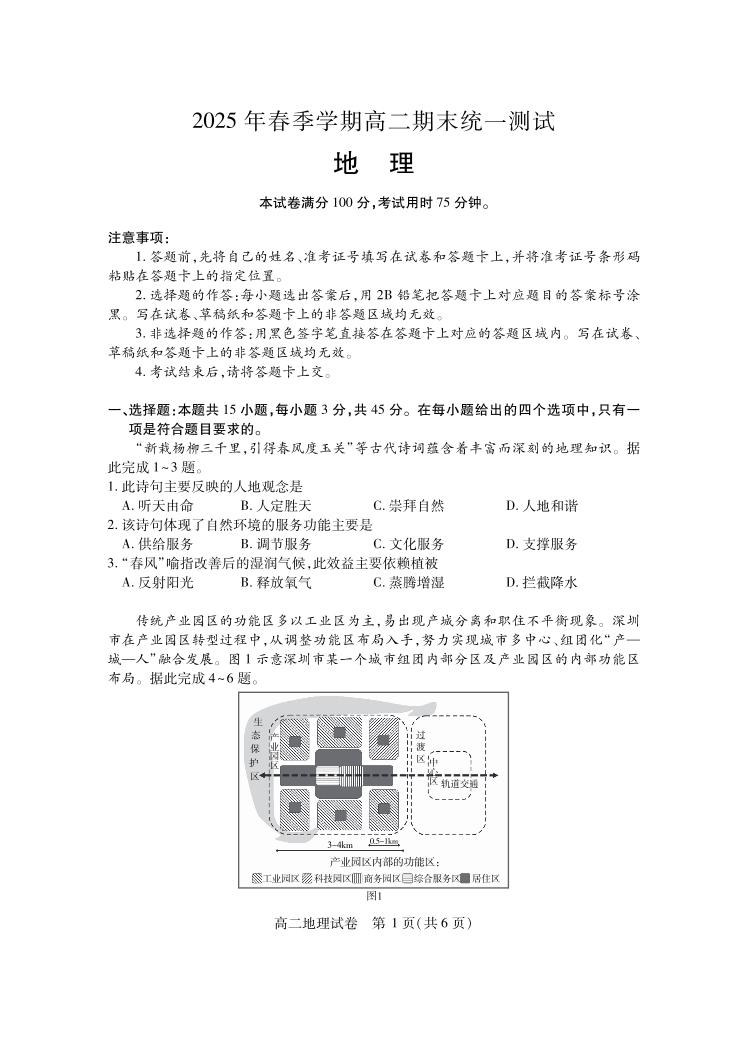 高二地理--湖北省黄石市2024-2025学年高二7月期末统一测试