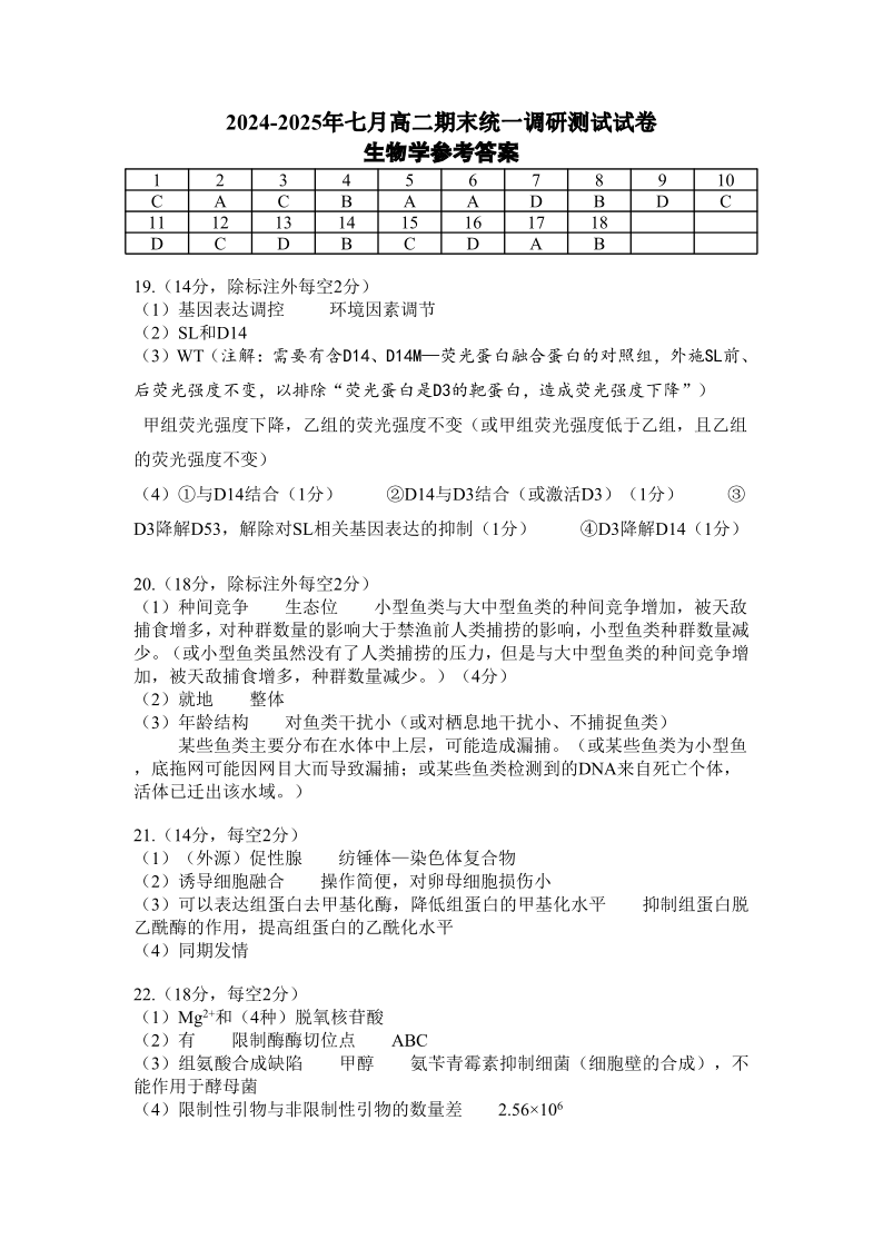高二生物答案--湖北省潜江市2024-2025学年下学期高二7月期末检测