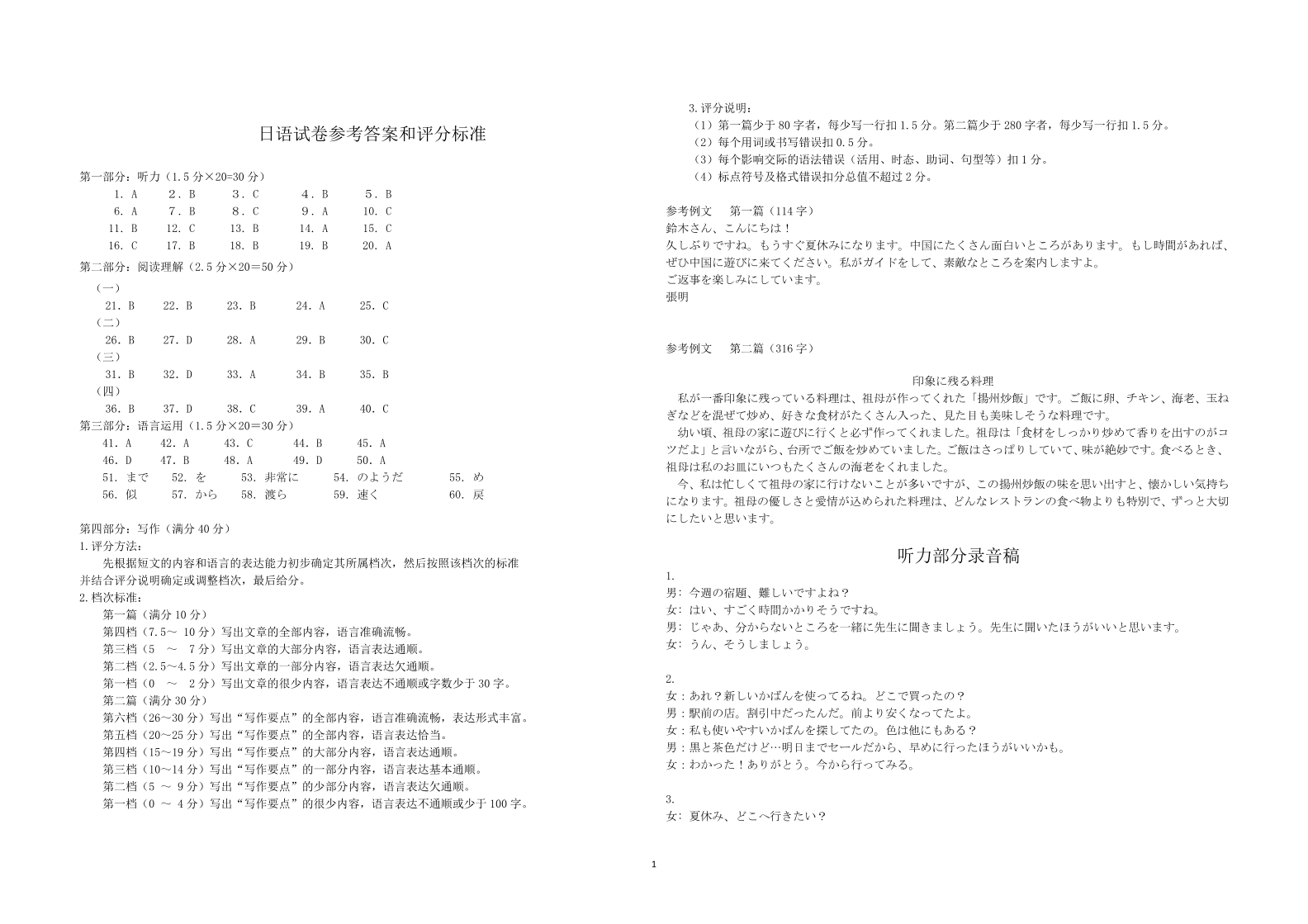 高二日语答案--湖北省天门市2024-2025学年高二7月期末统一调研测试