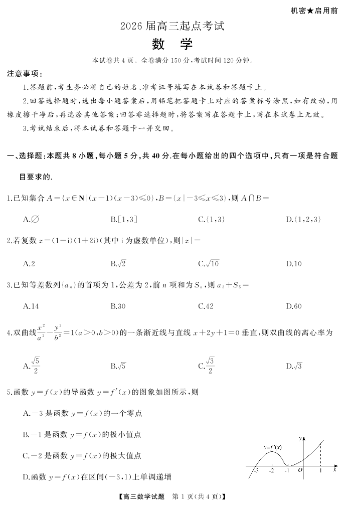 高二数学--湖南省天壹名校联盟2026届高三起点考试