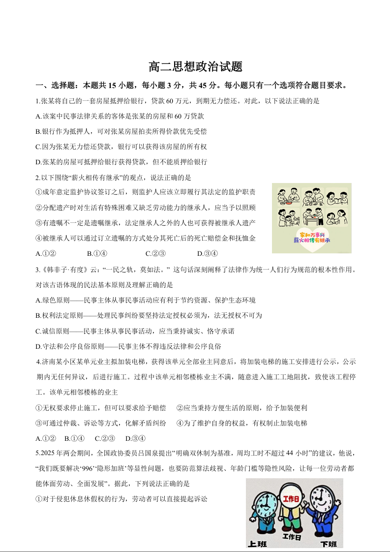 高二政治+答案--山东省济南市2024-2025学年高二7月期末学习质量检测