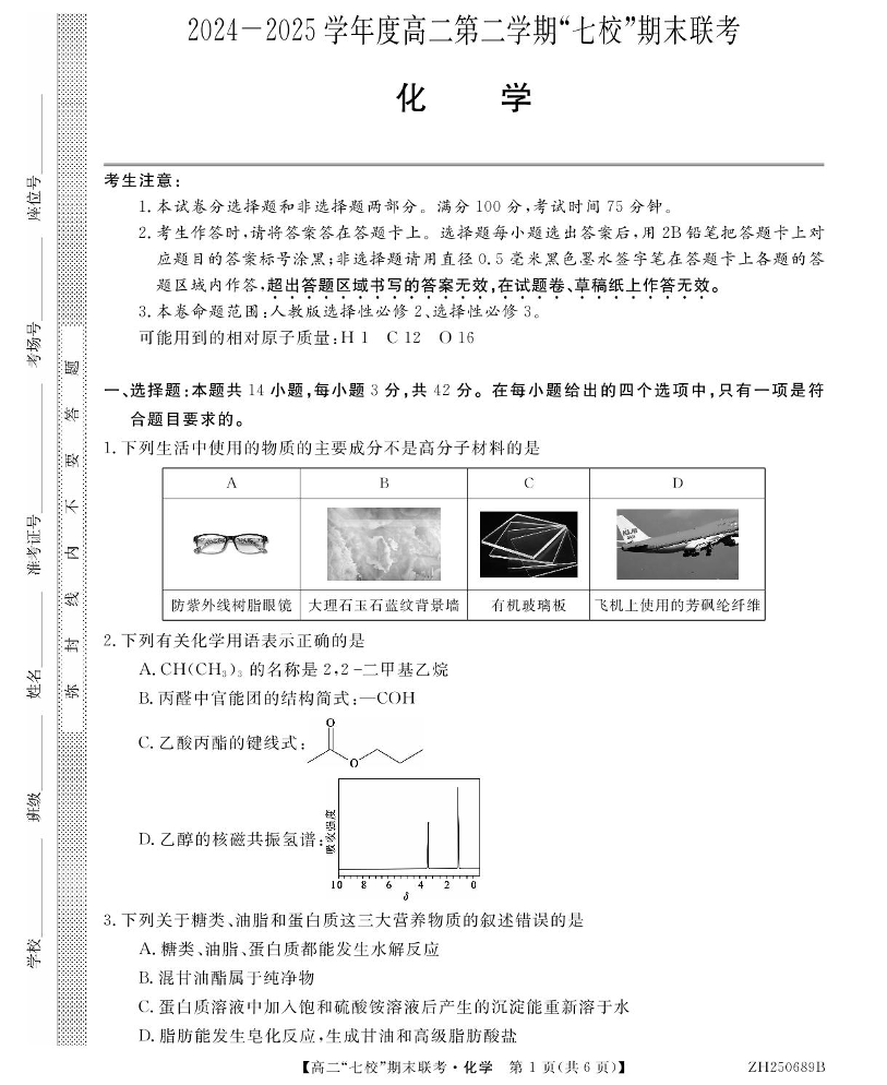 高二化学+答案--陕西省安康市七校2024-2025学年高二下学期7月期末联考