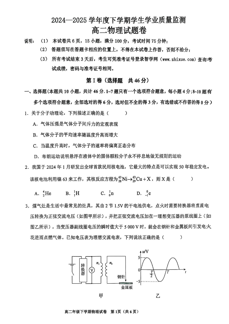 高二物理+答案--江西省抚州市2024-2025学年高二下学期期末考试