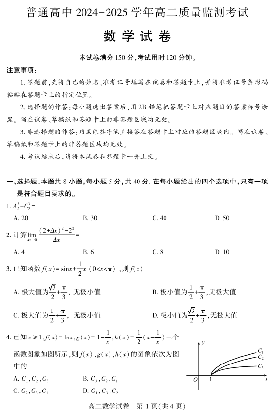 高二数学--湖北省恩施州普通高中2024-2025学年高二质量监测考试