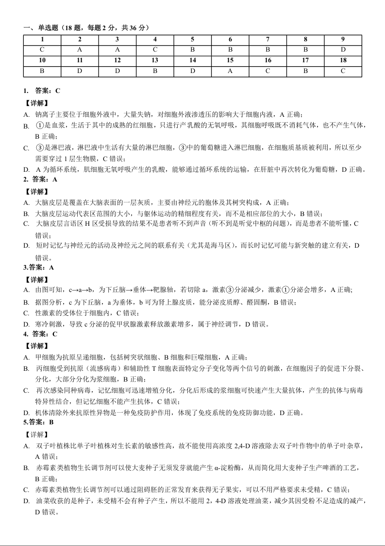 高二生物答案--湖北省恩施州普通高中2024-2025学年高二质量监测考试