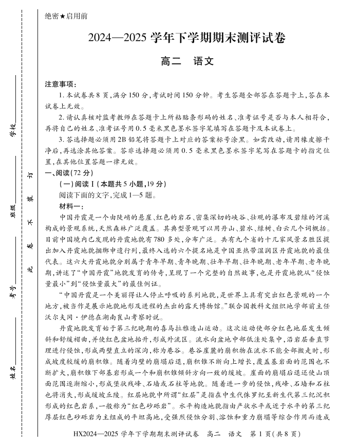 高二语文--河南省安阳市滑县2024-2025学年高二下学期期末测评