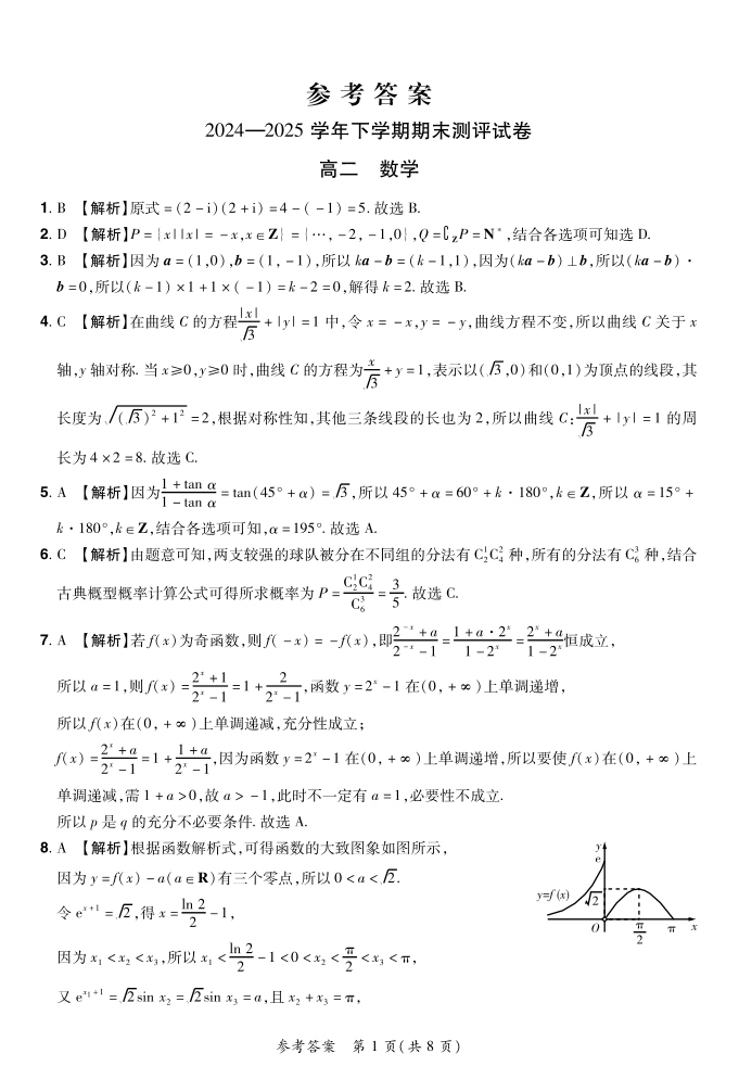 高二数学答案--河南省安阳市滑县2024-2025学年高二下学期期末测评