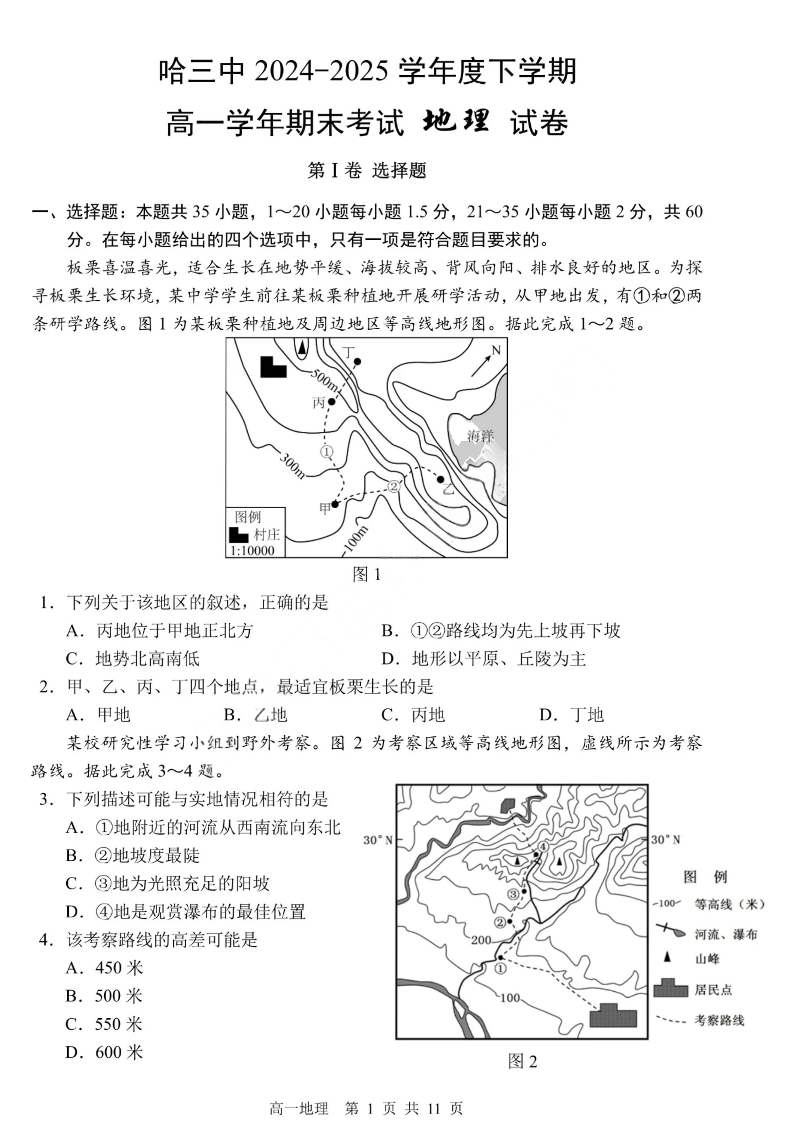 高一地理--黑龙江省哈尔滨第三中学2024-2025学年度下学期高一学年期末考试