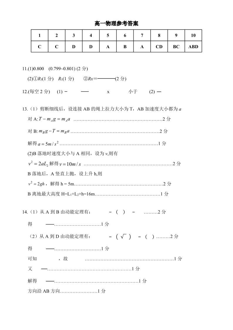 高一物理答案--湖北省荆州市2024-2025学年高一年级质量检测