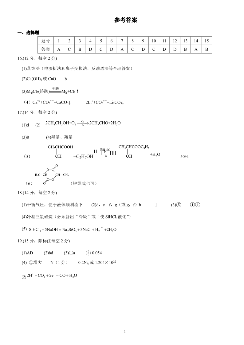 高一化学答案--湖北省荆州市2024-2025学年高一年级质量检测