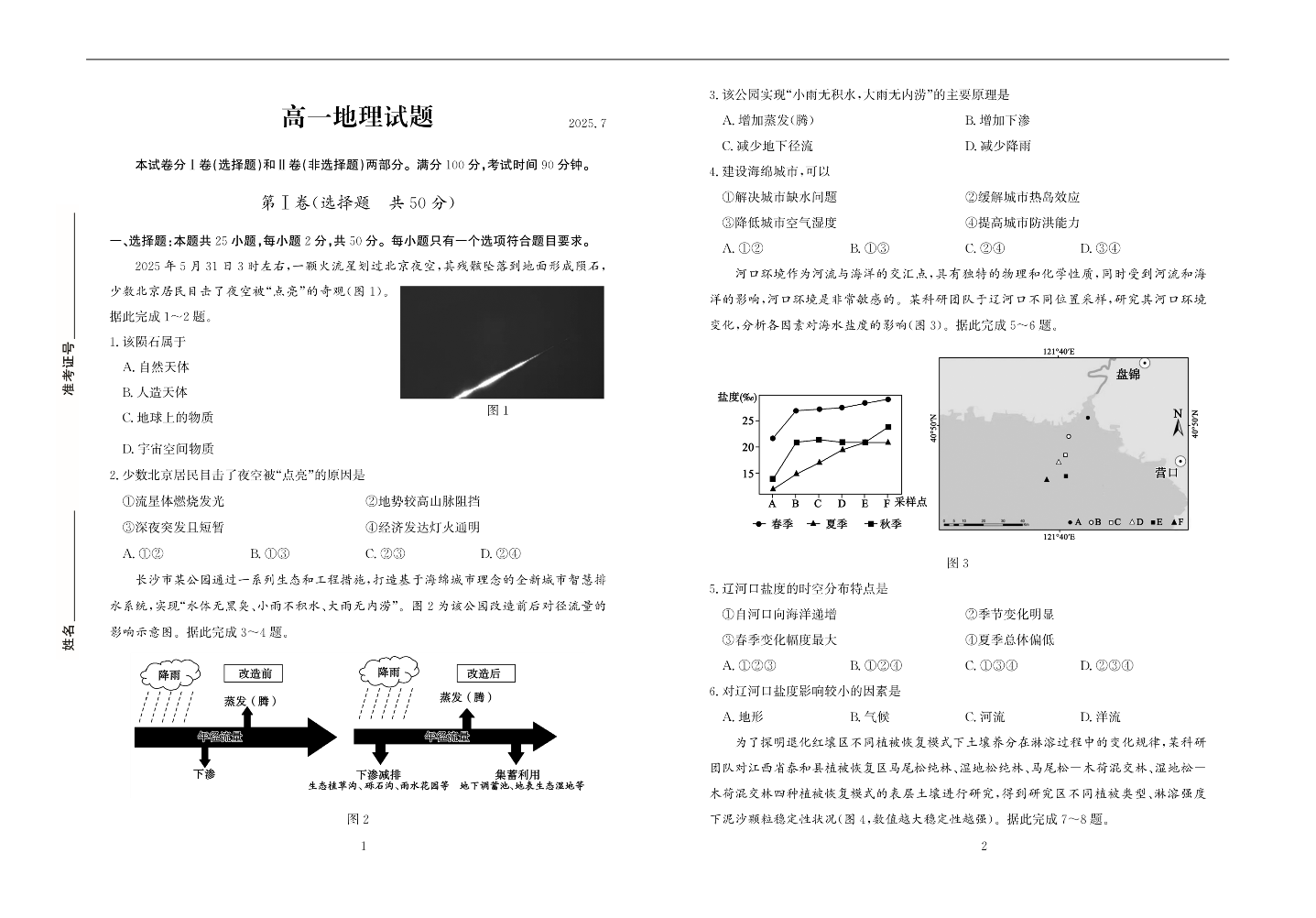 高一地理--山东省德州市2024-2025学年高一下学期期末考试