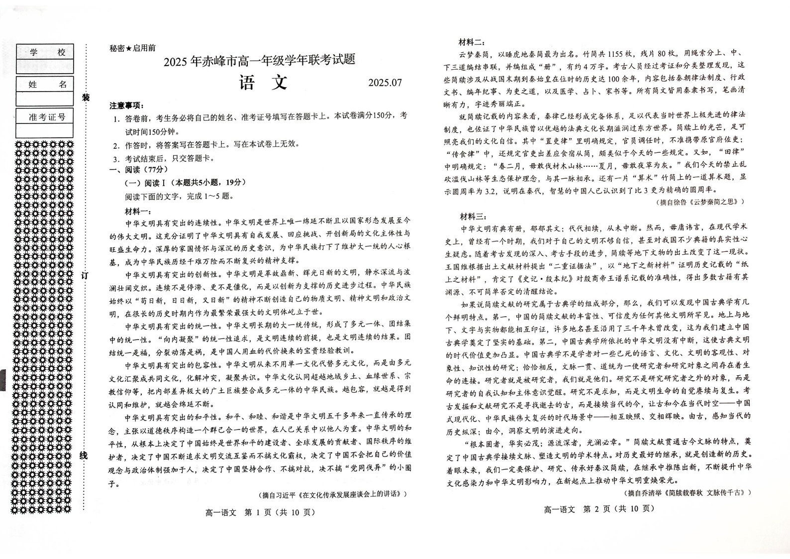 高一语文--内蒙古赤峰市2024-2025学年高一下学期期末联考