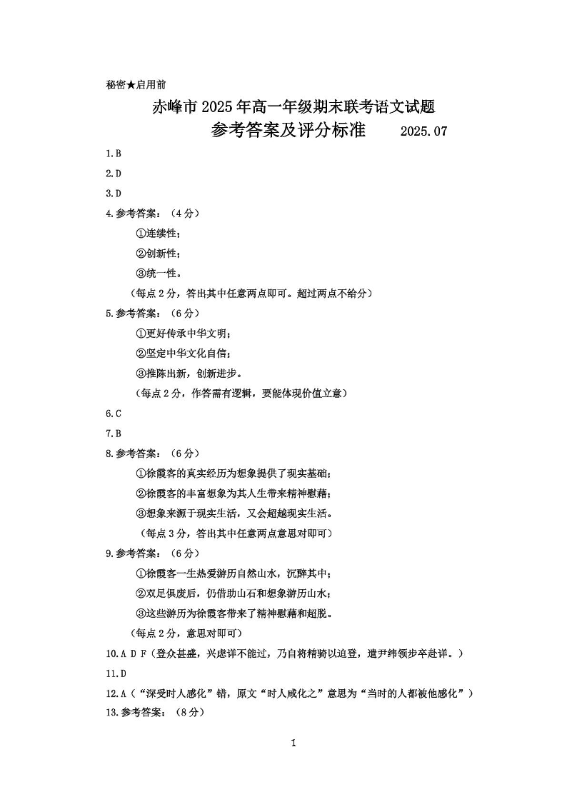 高一语文答案--内蒙古赤峰市2024-2025学年高一下学期期末联考