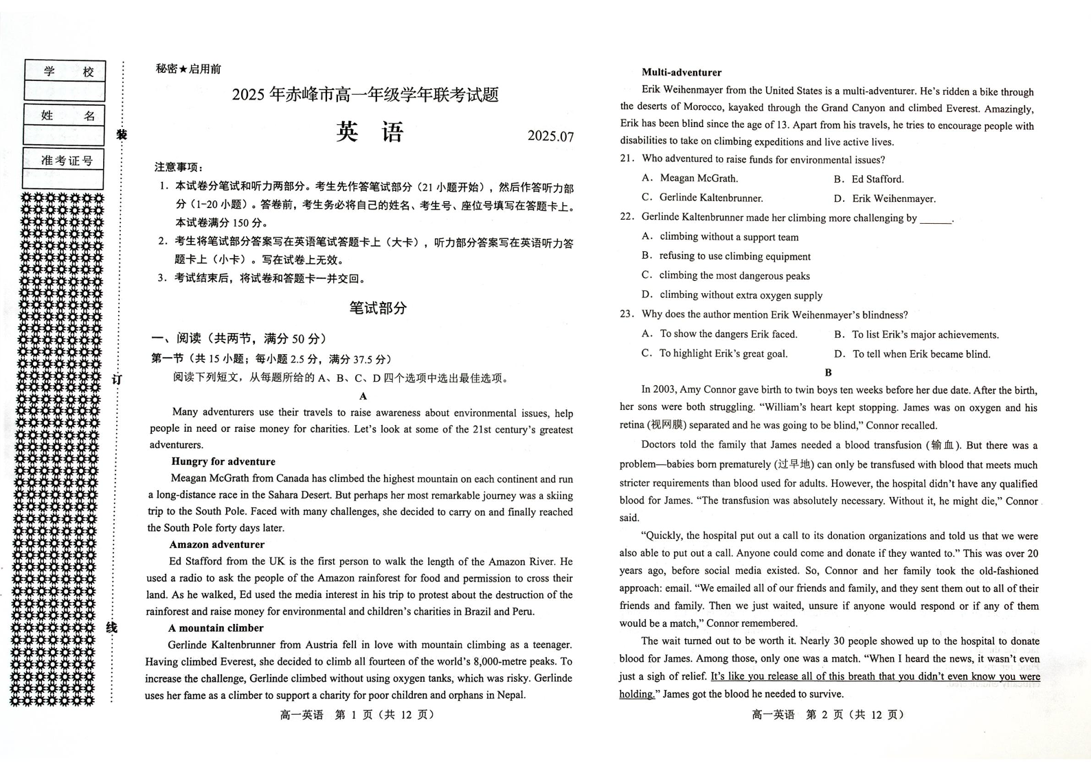 高一英语--内蒙古赤峰市2024-2025学年高一下学期期末联考