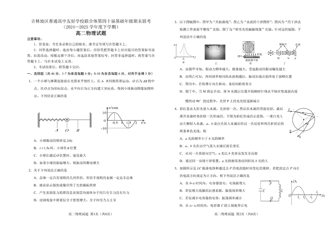 高二物理+答案--吉林地区普通高中友好学校联合体2024-2025学年高二下学期期末考试