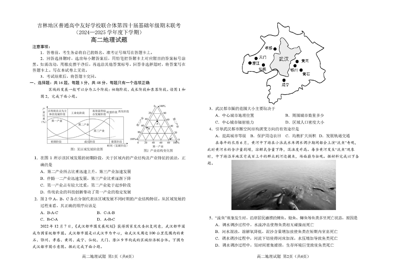 高二地理--吉林地区普通高中友好学校联合体2024-2025学年高二下学期期末考试