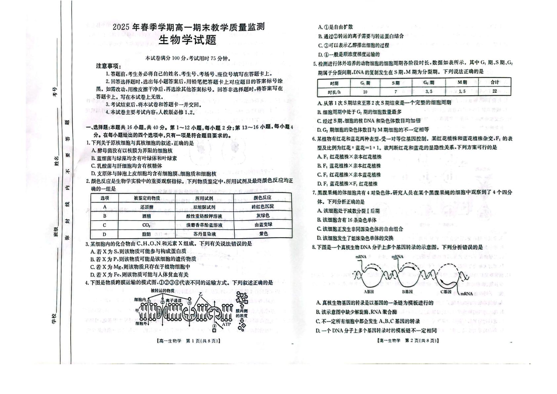 高一生物+答案--广西省贺州市2024-2025学年高一下学期金太阳期末教学质量监测