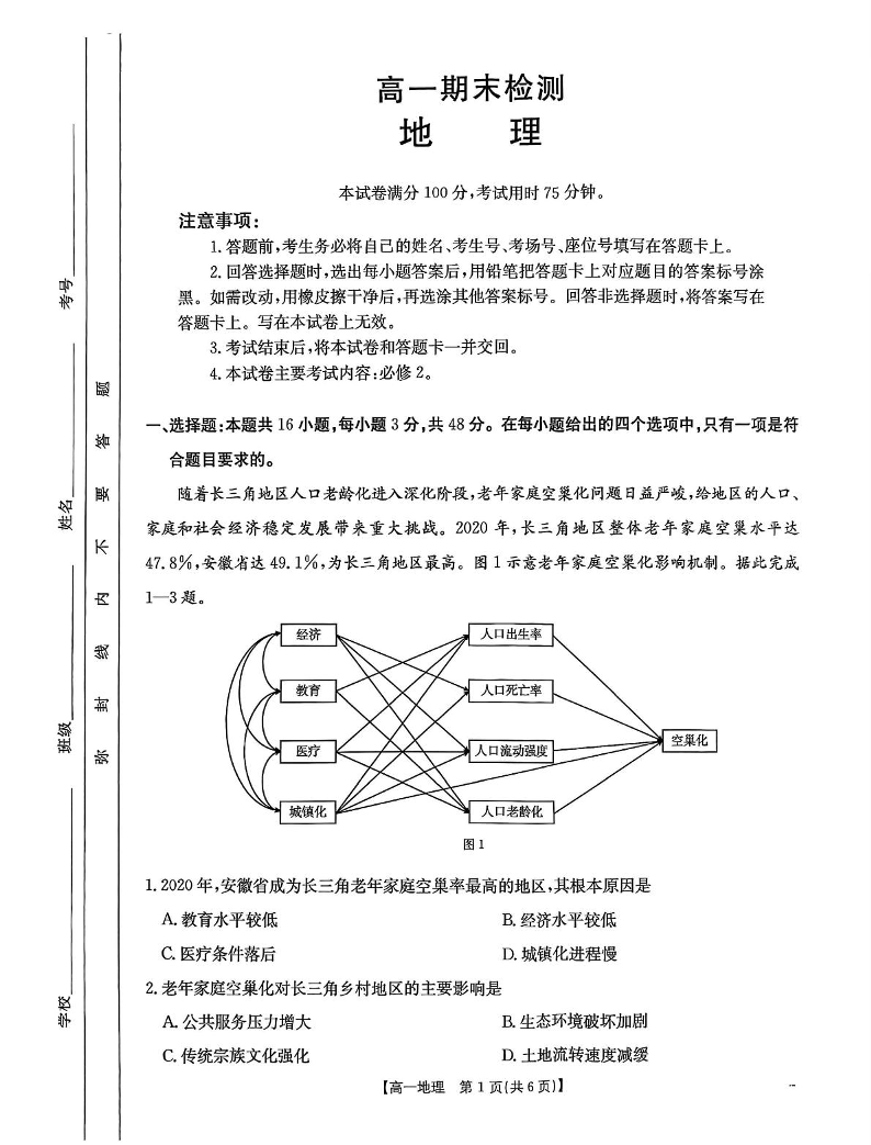 高一地理+答案--甘肃省白银市2024-2025学年高一下学期7月期末检测