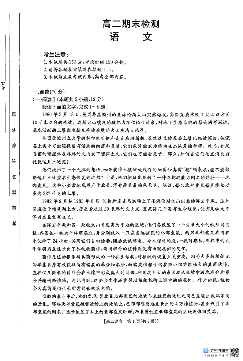 高二语文+答案--甘肃省白银市2024-2025学年高二下学期7月金太阳期末检测