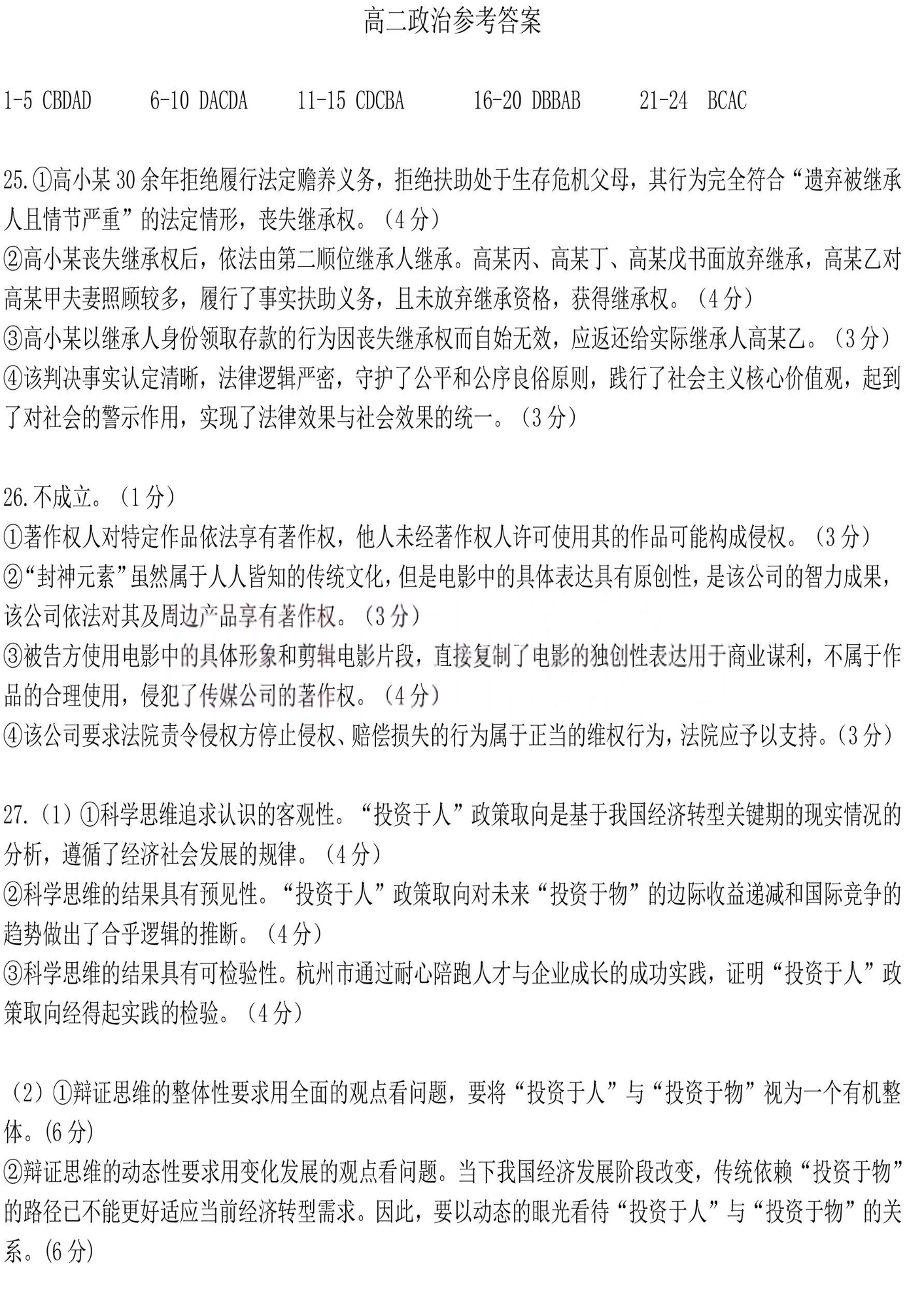 高二政治答案--辽宁省大连市2024-2025学年高二下学期期末考试
