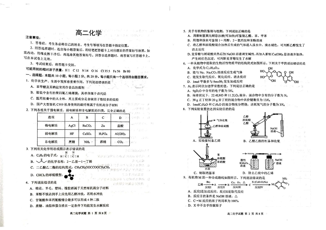 高二化学--山东省威海市2024-2025学年高二下学期期末考试