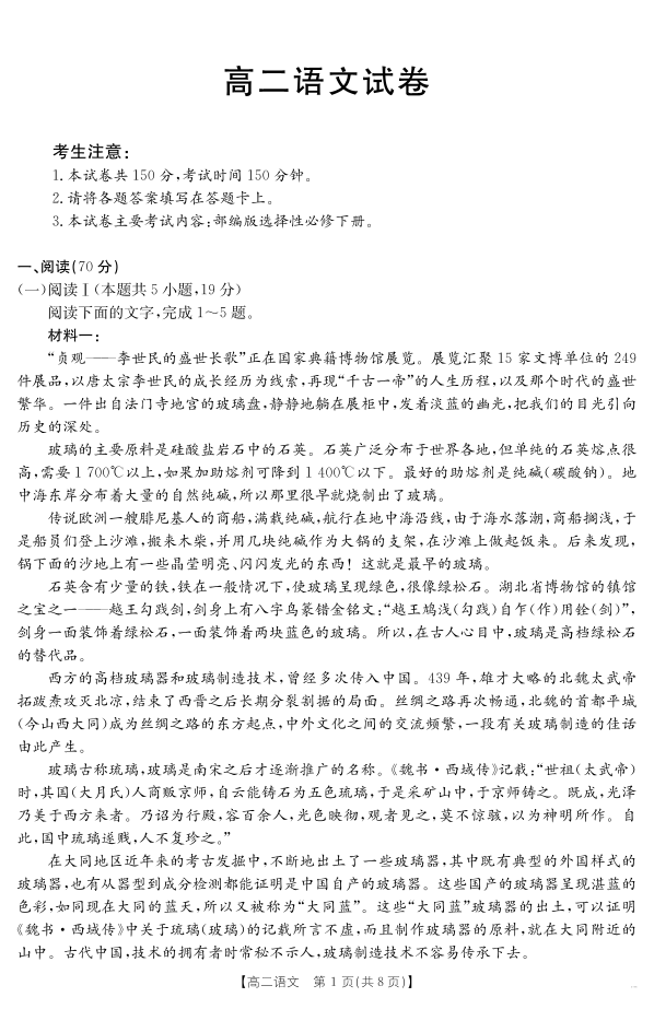 高二语文--新疆2024-2025学年高二下学期7月联考试卷