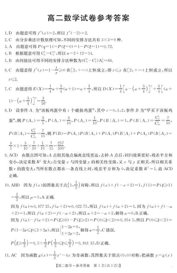 高二数学答案--新疆2024-2025学年高二下学期7月联考试卷