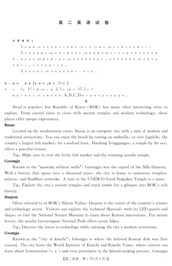 高二英语--新疆2024-2025学年高二下学期7月联考试卷