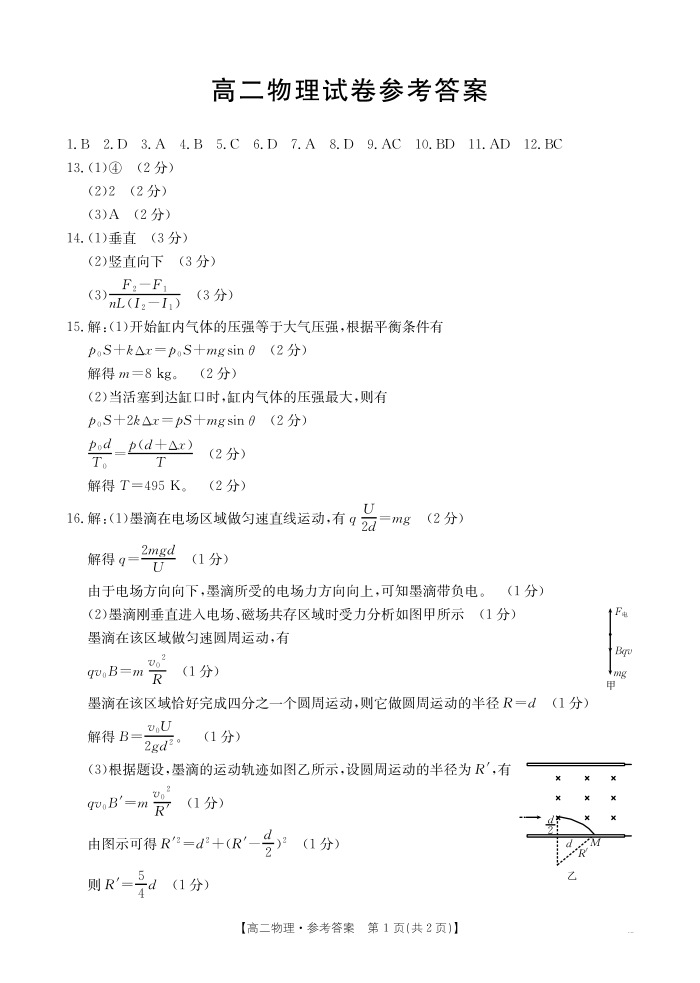 高二物理答案--新疆2024-2025学年高二下学期7月联考试卷