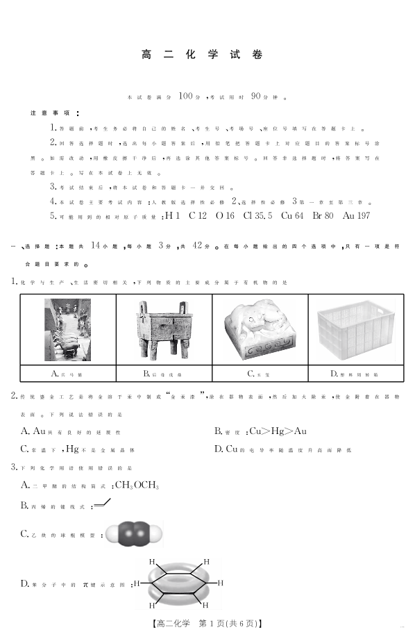 高二化学--新疆2024-2025学年高二下学期7月联考试卷