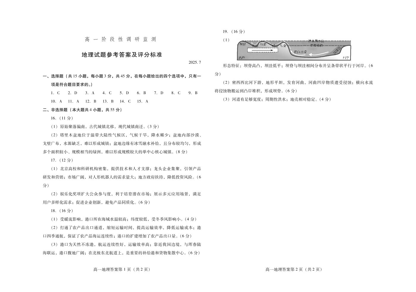 高一地理答案--山东省潍坊市2025.7期末阶段性监测