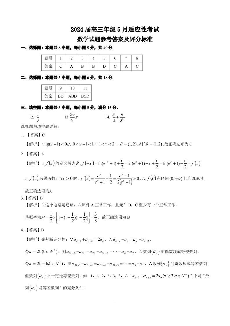 湖北省武汉市华中师范大学第一附属中学高三五月适应考数学答案