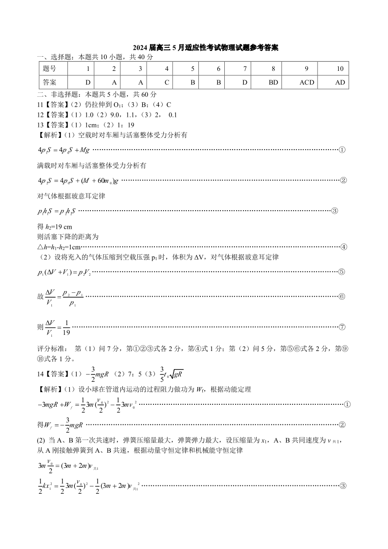 湖北省武汉市华中师范大学第一附属中学高三五月适应考物理答案