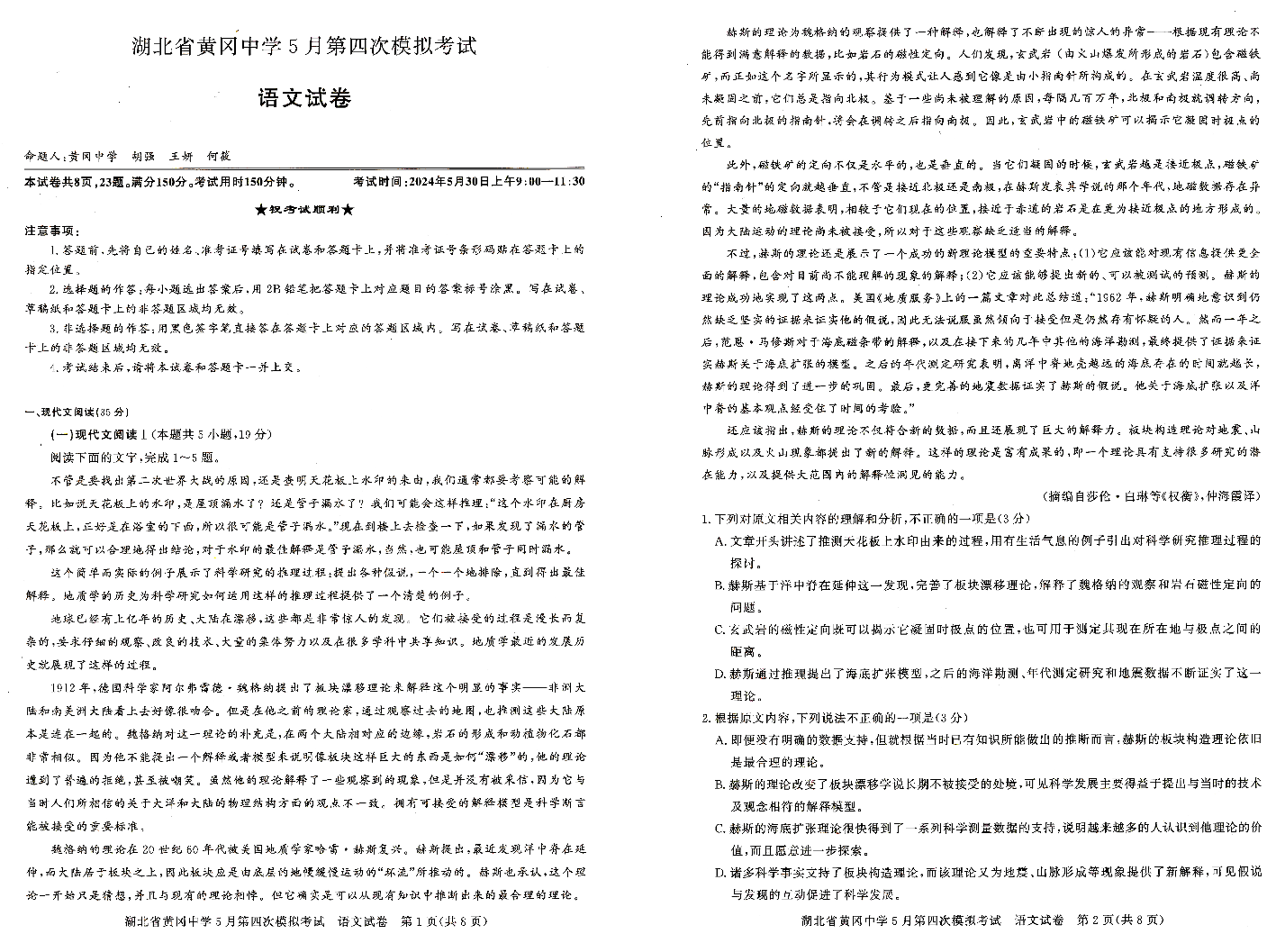 湖北省黄冈中学2024届高三5月四模语文