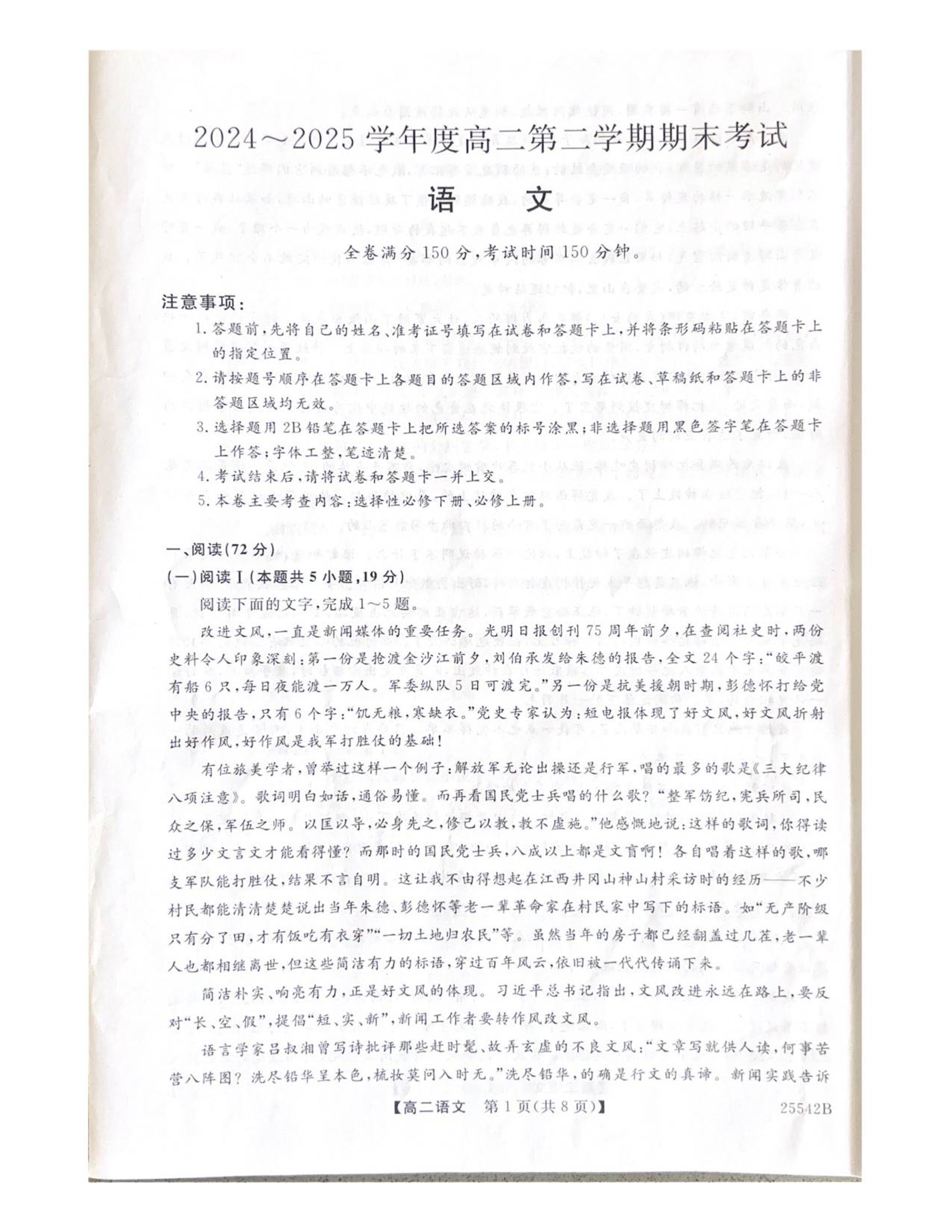 高二语文--吉林省白山市五校2024-2025学年高二下学期期末联考